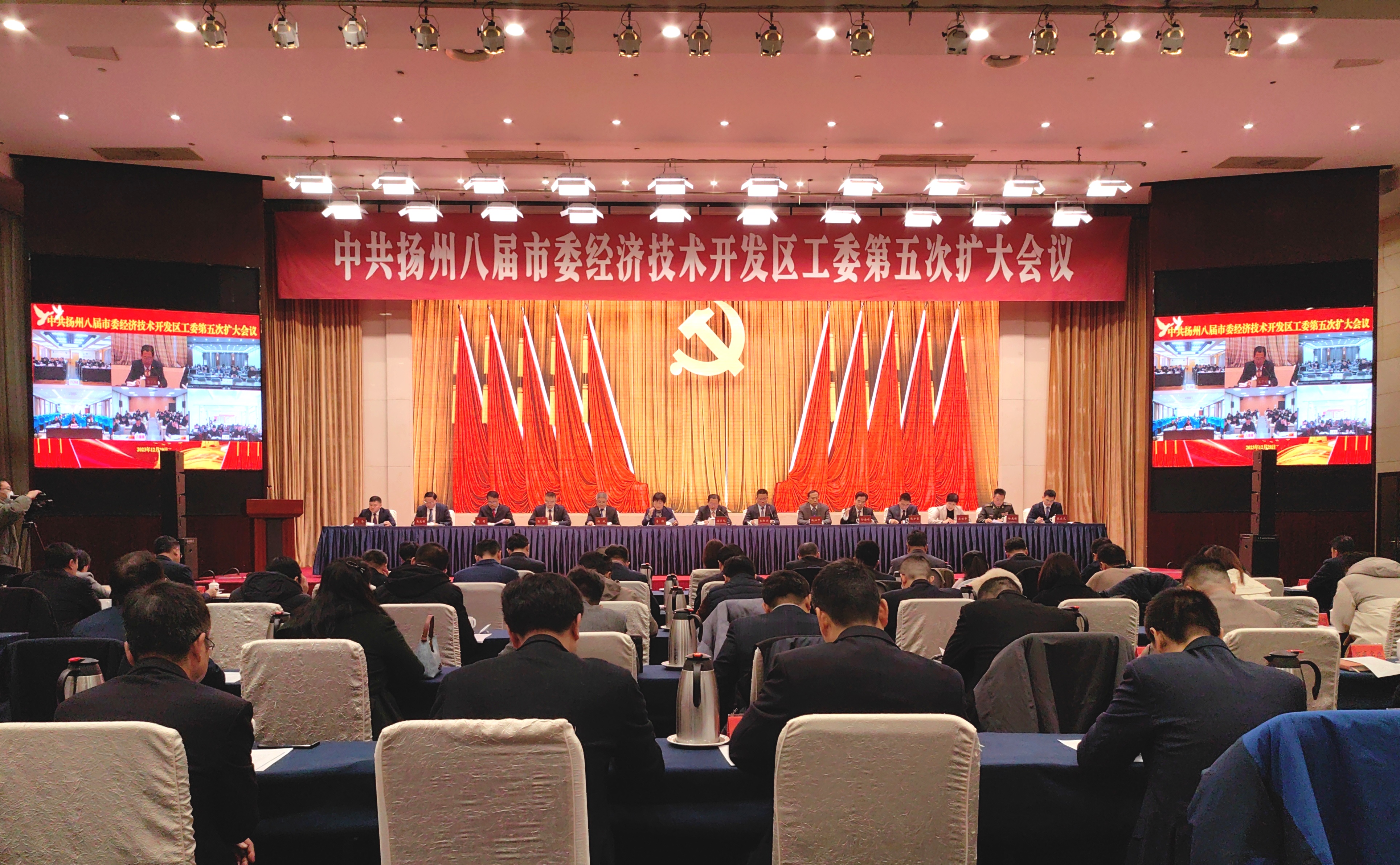 12月29日上午,中共扬州八届市委经济技术开发区工委第五次扩大会议在会议中心拉开帷幕。会上,扬州市委常委、副市长、区党工委书记潘学元代表党工委作《扩量提质走在前 创新升级做示范 奋力推进中国式现代化园区高质量发展新实践》的工作报告。