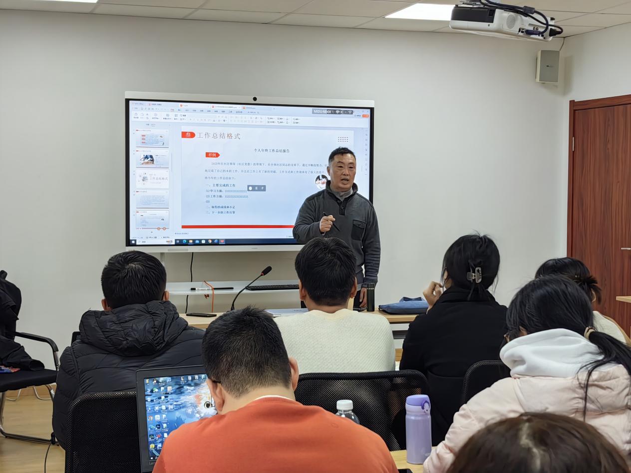 本次培训为社区社会工作者提供实务授课,主要包括“公文写作的格式、要素及注意事项”、“日常工作软件使用及工作中的摄影技巧”两个主题。