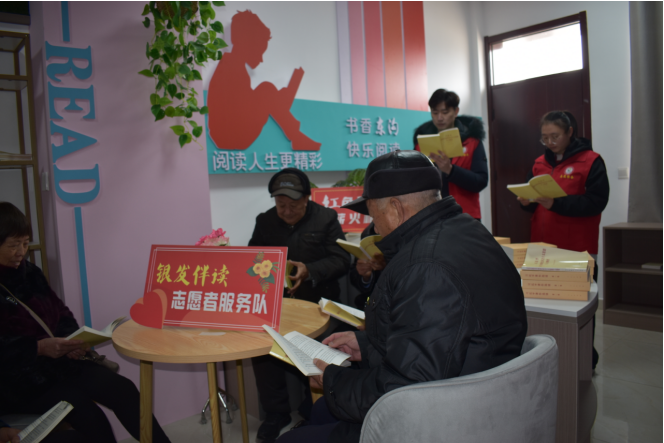 红色传承,伴读有声。睦邻点图书室里,“银发伴读”志愿者服务队的党员志愿者们正在为老人们读读本;长者食堂里,老人们正在观看《盐阜大地上的红色地标》宣传片,接受一次人文和精神上的洗礼。东沟镇组织老人们开展多种多样的活动,通过这些“红色课堂”的教育,将红色精神融入血液中,发挥党员的先锋模范作用,传递健康向上的正能量,不仅增强了党员的荣誉感、使命感和责任感,也让全体老人感受到长者食堂的文化氛围。