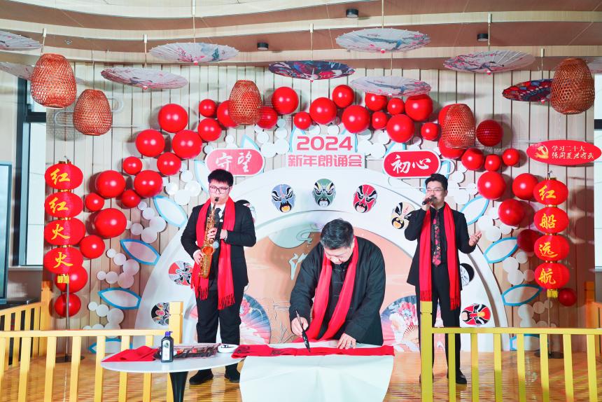 台上朗诵动情,台下听众入迷。建湖县内朗诵爱好者相聚温馨的读吧,凝聚声音的力量,《中国红》《美丽中国》《我和我的祖国》《英雄》《奋斗吧,2024!》……每一个节目,都饱含着朗诵者的真挚情感。本地诗人陶天真的一首红色诗歌《北秦庄》,在彭苏华、唐炳亚等4位朗诵者的演绎下,让人一下子思绪打开,仿佛置身那个村庄,又让观众们珍惜眼前的和平年代,感慨如今的幸福生活。同样,纪云梅的红色故事作品《一跃芳华 精神永存》,也有异曲同工之妙,让人不得不赞叹声音的魔力,如临其境,润养身心。周晓春朗诵的《建县赋》,赋注重声律和谐,句式追求骈偶,文辞讲究词藻用典,配上古乐,令人陶醉其中。