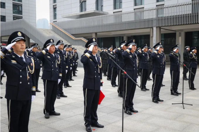 为赓续和弘扬人民警察光荣传统和优良作风,切实增强广大民警职业荣誉感、自豪感、归属感,激发全体民警奋进新征程、建功新时代的信心和决心。南通市公安局崇川分局举行2024年中国人民警察节升警旗仪式。仪仗队员迈着铿锵有力、整齐划一的步伐,护卫着警旗正步走向升旗台。伴随着嘹亮的中国人民警察警歌,警旗冉冉升起、迎风飘扬。