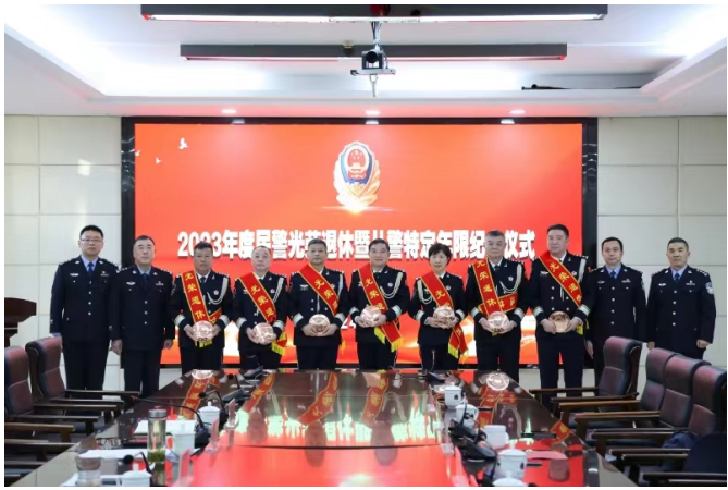 为庆祝第四个中国人民警察节,进一步增强广大民警的职业荣誉感、自豪感和归属感,激发队伍活力和战斗力,1月10日上午,涟水县公安局老、中、青三代民警汇聚一堂,举行2023年度民警光荣退休暨从警特定年限纪念仪式,共同见证人民警察无悔誓言的坚守与传承。涟水县副县长、公安局党委书记、局长马仁慧同志出席仪式并讲话,局党委副书记、政委张巍巍同志主持仪式。该局在涟领导班子成员及2023年度退休民警,从警20周年、30周年和2023年新警代表参加仪式。