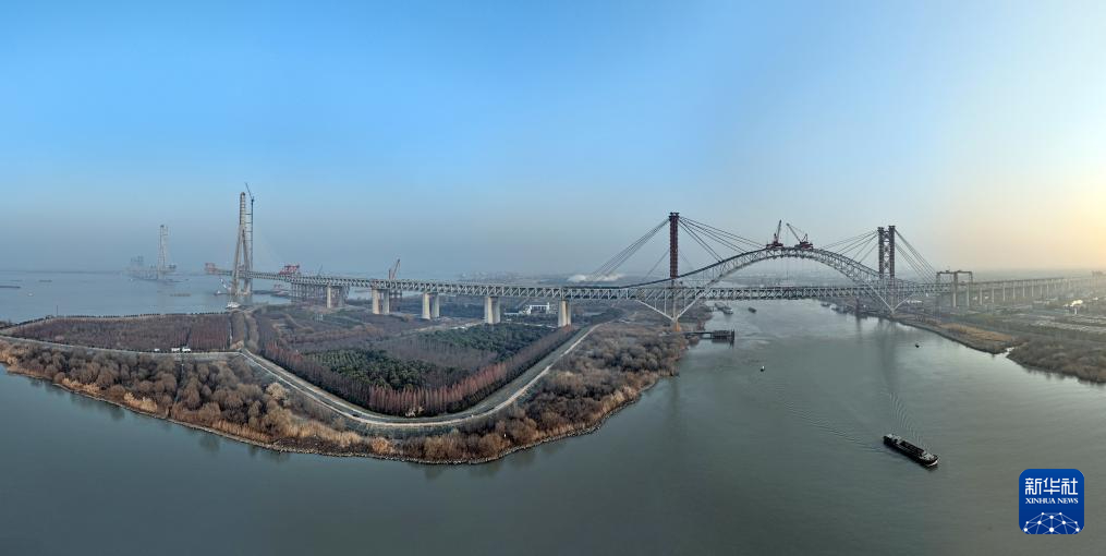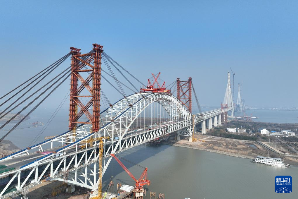 1月12日拍摄的位于江苏省常州市的常泰长江大桥录安洲专用航道桥(无人机照片)。