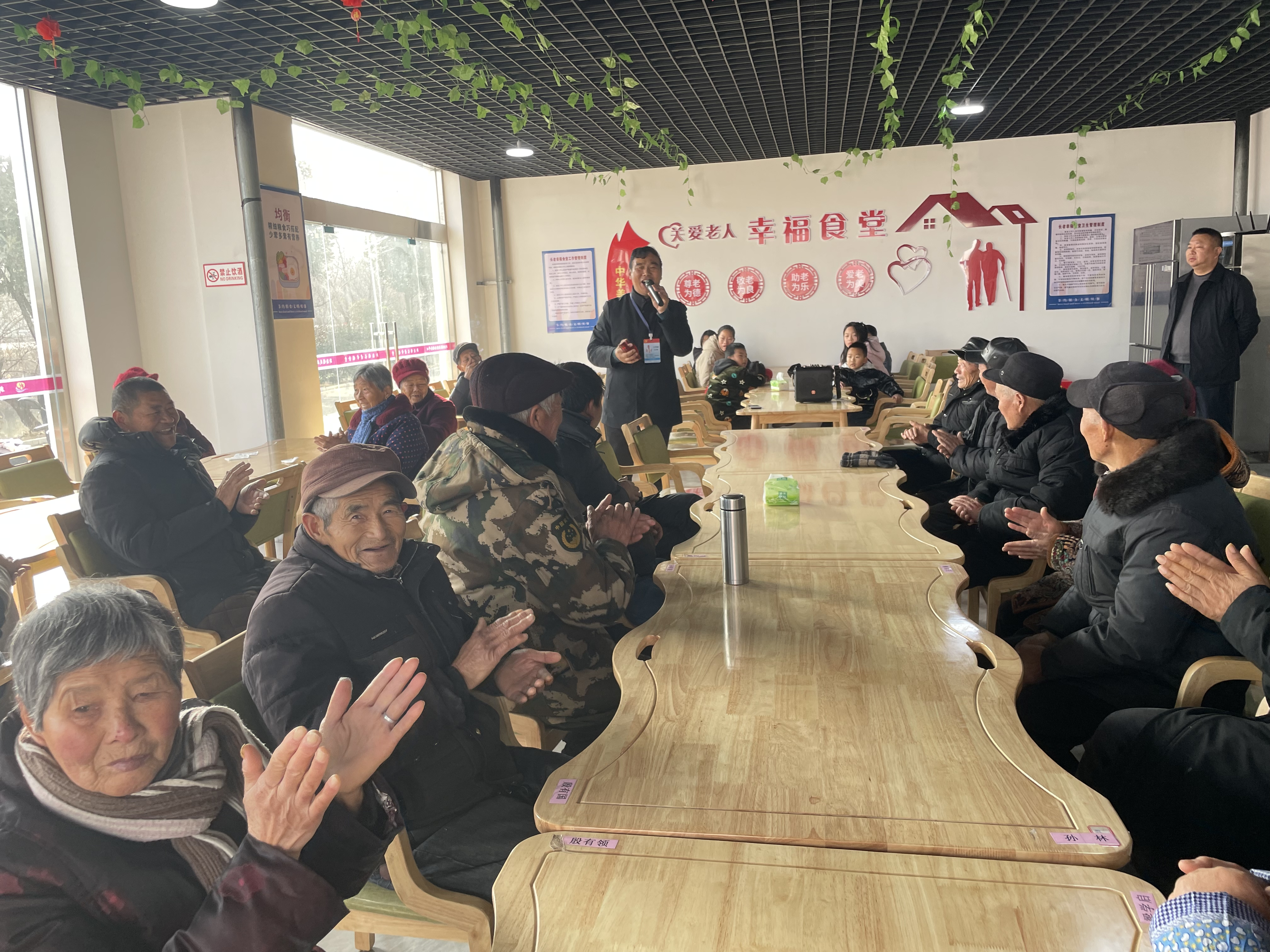 乡贤宣讲,文化润民。“党的关怀记心房,政府为民办食堂,味美价廉饭菜香……”百姓名嘴王其稳走进新沟村长者幸福食堂,从老百姓住上好房子,讲到集体办食堂,富有感染力的演讲赢得现场掌声一片,激发了大家感恩之心,爱党之情。新沟镇充分发挥社区课堂开放日的作用,邀请乡贤给老人志愿宣讲,点亮老年人的精神文化生活。乡贤文化作为密切联系群众的纽带,用好食堂这个平台,努力将长者幸福食堂打造成老人常来常往的活动交流中心。以文化活动倡新风,形成共享有爱、尊老爱老的良好风气,让文明新风浸润群众心田。