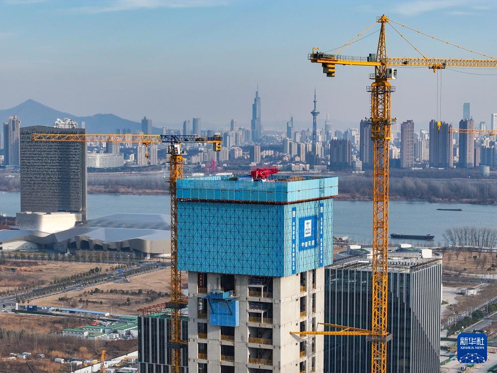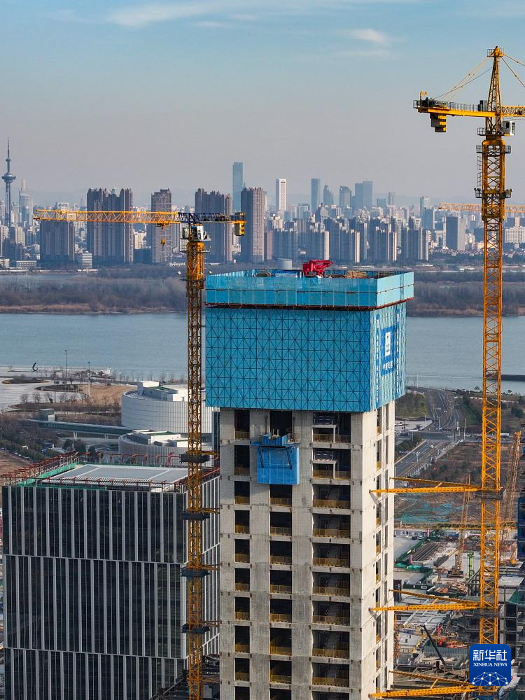当日,在江苏省南京市江北新金融中心一期项目施工现场,承建方中建三局运用“空中造楼机”进行项目封顶前的最后一次顶升作业,各项施工稳步推进。据介绍,该项目建造采用智能集成“空中造楼机”,提高了高层建筑施工的机械化、智能化及绿色施工水平,让“高空作业”变为“室内施工”,施工效能提升约20%。