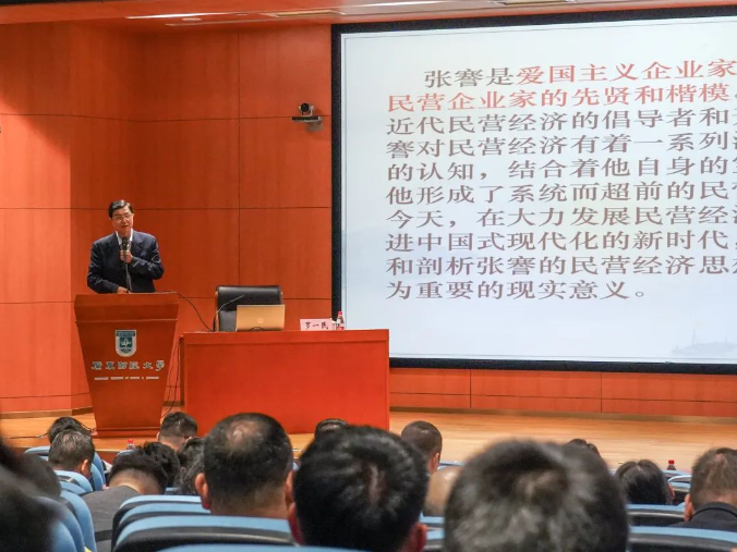本次活动由广东省工商联党组成员唐小兵主持,广东省委统战部副部长、省工商联党组书记陈丽文,南通市政协副主席、张謇企业家学院院长单晓鸣,广东省工商联党组成员、专职副主席张宏斌,广东省工商联党组成员、秘书长关向明,省工商联二级巡视员王永清,广东财经大学党委书记郑贤操、副校长邹新月以及省工商联机关、建行广东省分行业务骨干、各地级市工商联党组书记和省工商联执常委企业家,研修班学员、广东财经大学师生代表400余人聆听了专家授课。