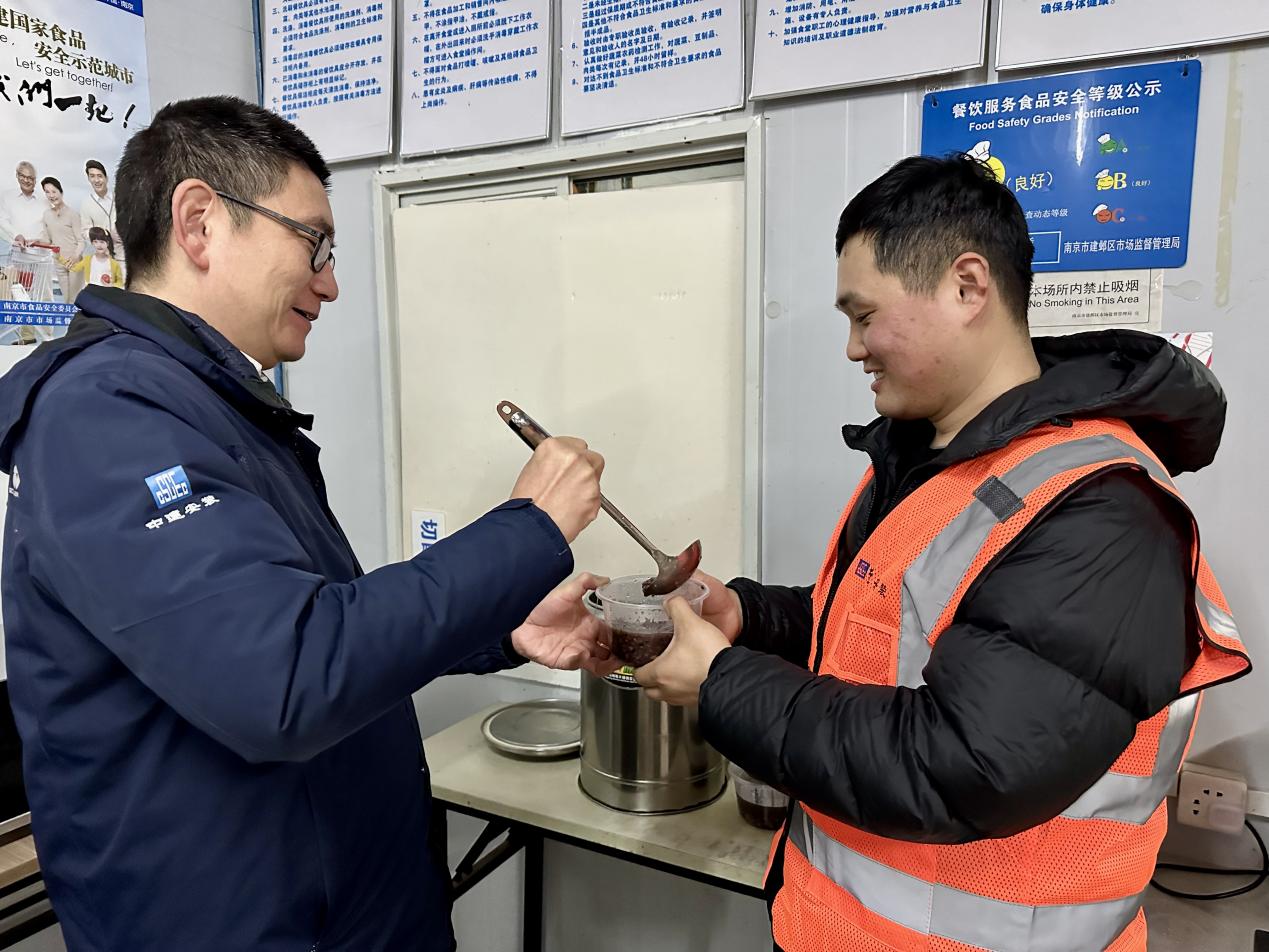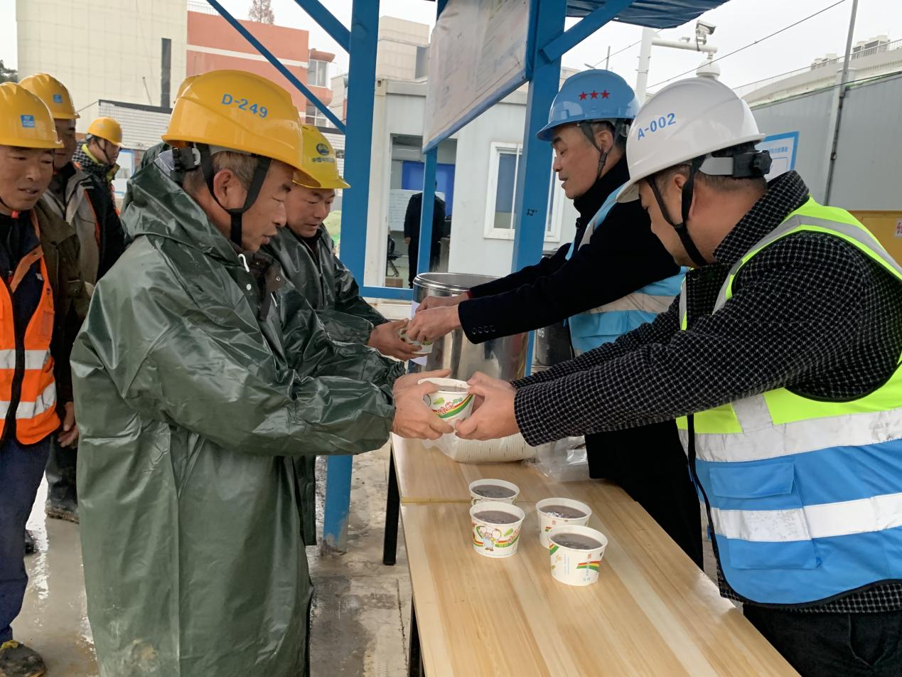 在项目部门口,一包包保暖棉衣整齐放在活动场地上,保温箱里放好了一碗碗精心熬制的腊八粥,管理人员为工友代表发放腊八慰问物资。“喝了粥,祝你们事事‘粥’到,岁岁平安。”项目管理人员在给工友发放腊八粥的同时还不忘送去新年的祝福。粥虽小事,却暖人心,对于常年离家、奋斗在建设一线的工友们而言,一碗暖胃的热粥,也慰藉着想家的期盼,喝完腊八粥,一场冬季施工安全教育拉开序幕,让工友们把安全意识的弦儿再紧一紧,过一个安全祥和的新年。
