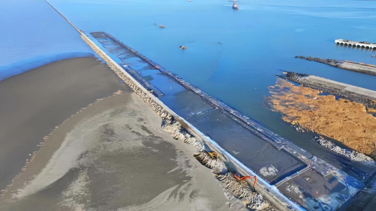 金牛码头是重大基础设施工程,码头区位于近岸浅滩海域,后方紧邻工业区,结合东西下海通道建设现状,沿近岸海堤和下海通道布置码头,规划岸线长度3.7km,建设13个5万吨级及以下通用散杂货泊位。一期工程总投资约23亿元,计划建设2个5万吨级通用泊位和1个5万吨级多用途泊位,码头设计年通过能力408万吨,配套建设陆域堆场及道路、生产和辅助生产等相关配套工程,工期计划18个月,预计明年5月份竣工。
