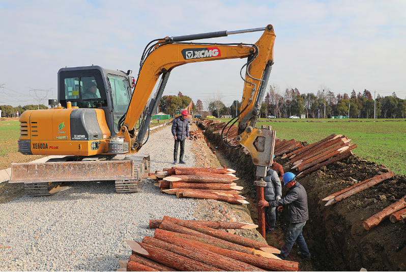连日来,位于新庄街道的整区域推进高标准农田建设项目现场,建设热潮涌动。该项目建设总面积3900亩,涉及曹家、核心、茭渎、新庄、洪巷等5个村(社区),计划新建田间道路7.16公里、沟渠22.935公里、泵站1座等。项目建成后,将为农业增产、农民增收夯实好“耕”基。图为近日拍摄的建设现场。