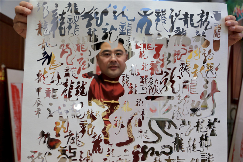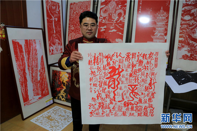 龙年在即,江苏省连云港市非物质文化遗产代表性传承人、赣榆区罗阳中心小学教师李伟采用多层立体刻纸法,花费20余天时间,搜集整理出一百个不同字体的“龙”字,采用多层立体纸刻法,精作《百龙图》,以此迎接龙年的到来。(王玥 报道员:邵世新 陈娟)