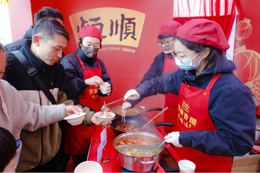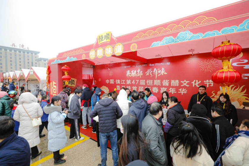 镇江是“中国醋都”,因江得名、因醋闻名,举办了近半个世纪的恒顺酱醋文化节,始终求新求变、备受关注,既是镇江本土年俗文化的重要标志,也是中华“老字号”传承与创新的见证。今年,恒顺酱醋文化节恢复了线下“散打酱油”惠民活动,在丹徒主会场、市区恒顺老厂门市部、丁岗新街菜场三个供应点总计投放300吨恒顺酱油。与此同时,恒顺酱醋文化节活动同步在上海城隍庙、苏州观前街、北京、兰州、成都、海口、哈尔滨等全国20省44城联动,让分散各地的镇江游子重拾故乡记忆,让更多的人都能吃到最实惠的恒顺味道。