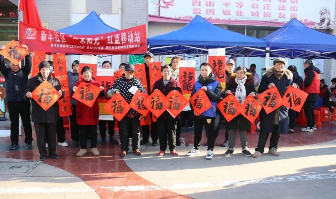 文明实践在亭湖。近日,盐城市亭湖区新洋街道海韵林湾花园幸福广场人气满满、暖意融融,充满了喜气洋洋的年味。在新春即将来临之际,为进一步丰富辖区居民精神文化生活,提升社区居民“邻里情”,新洋街道新时代文明实践所联合新丰社区党委、新时代文明实践站、社区网格中心,开展了以“温暖寒冬迎新春”为主题的2024年度首期“一米阳光”红蓝移动站和“网格U+”新春年味集市活动。