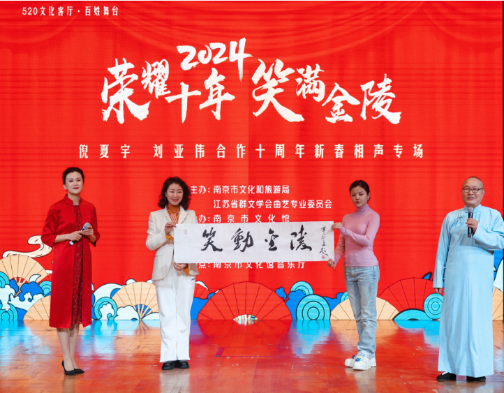 昨天晚上,位于南京长江路的南京市文化馆音乐厅里掌声不断,笑声不绝。由江苏省群文学会曲艺专业委员会、南京市文化和旅游局主办,南京市文化馆承办,南京市鼓楼区文化馆、南京群星相声艺术团协办的“荣耀十年笑满金陵”倪夏宇刘亚伟个人相声专场在南京举行,来自南京市区的众多观众冒着严寒前来为南京的本土笑星捧场,整个音乐厅变成了欢乐的海洋。