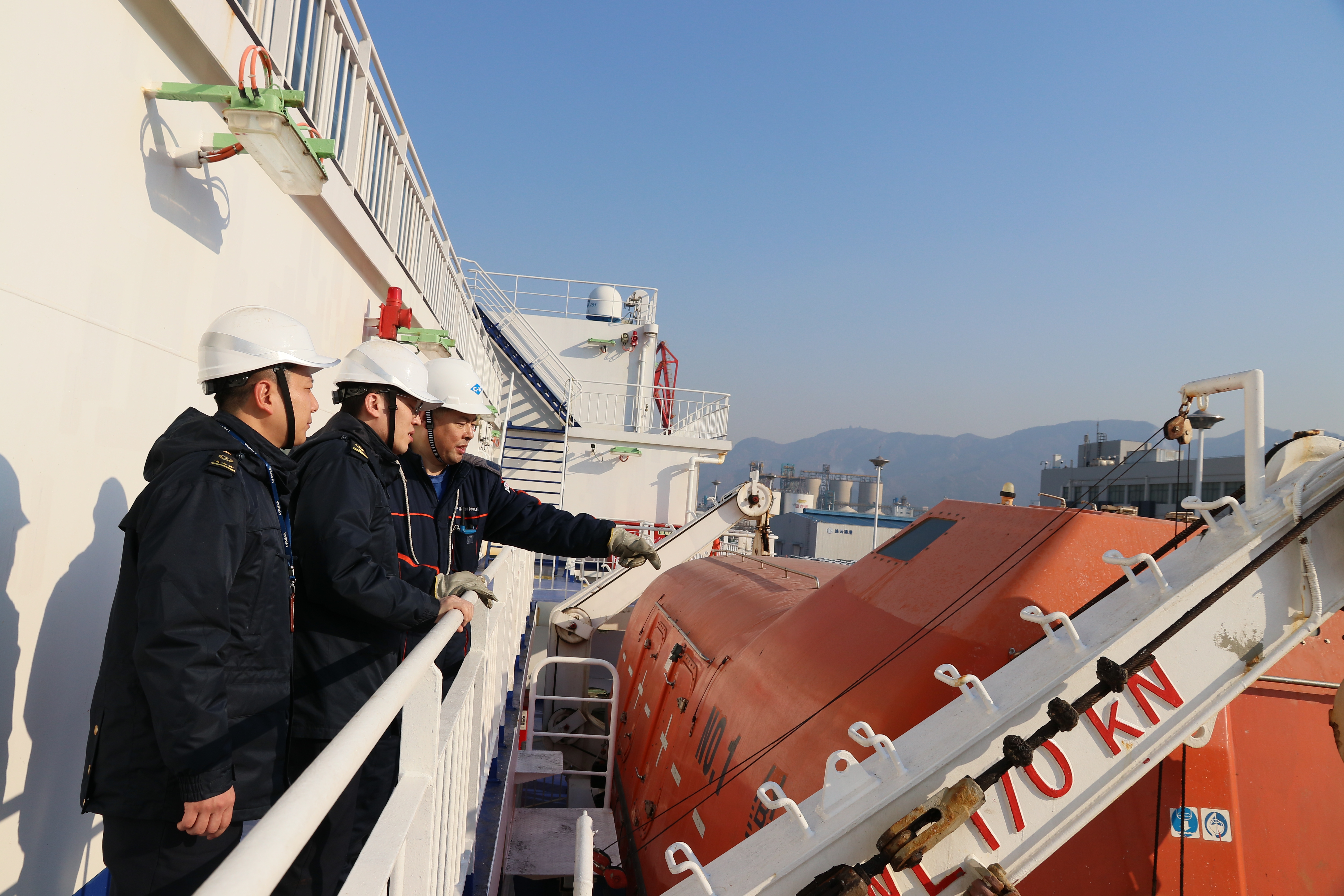 执法人员检查救生艇