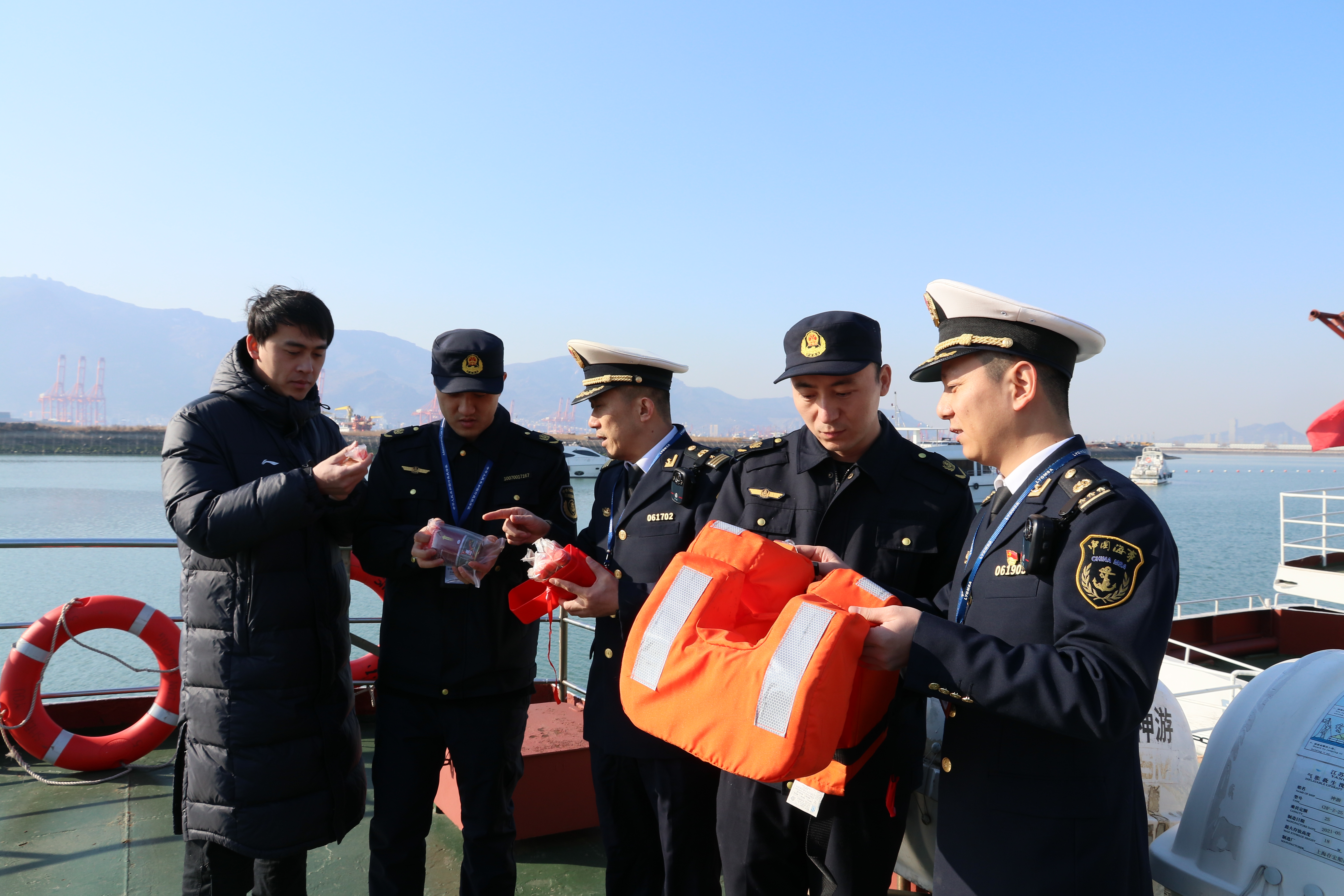 执法人员检查救生设备