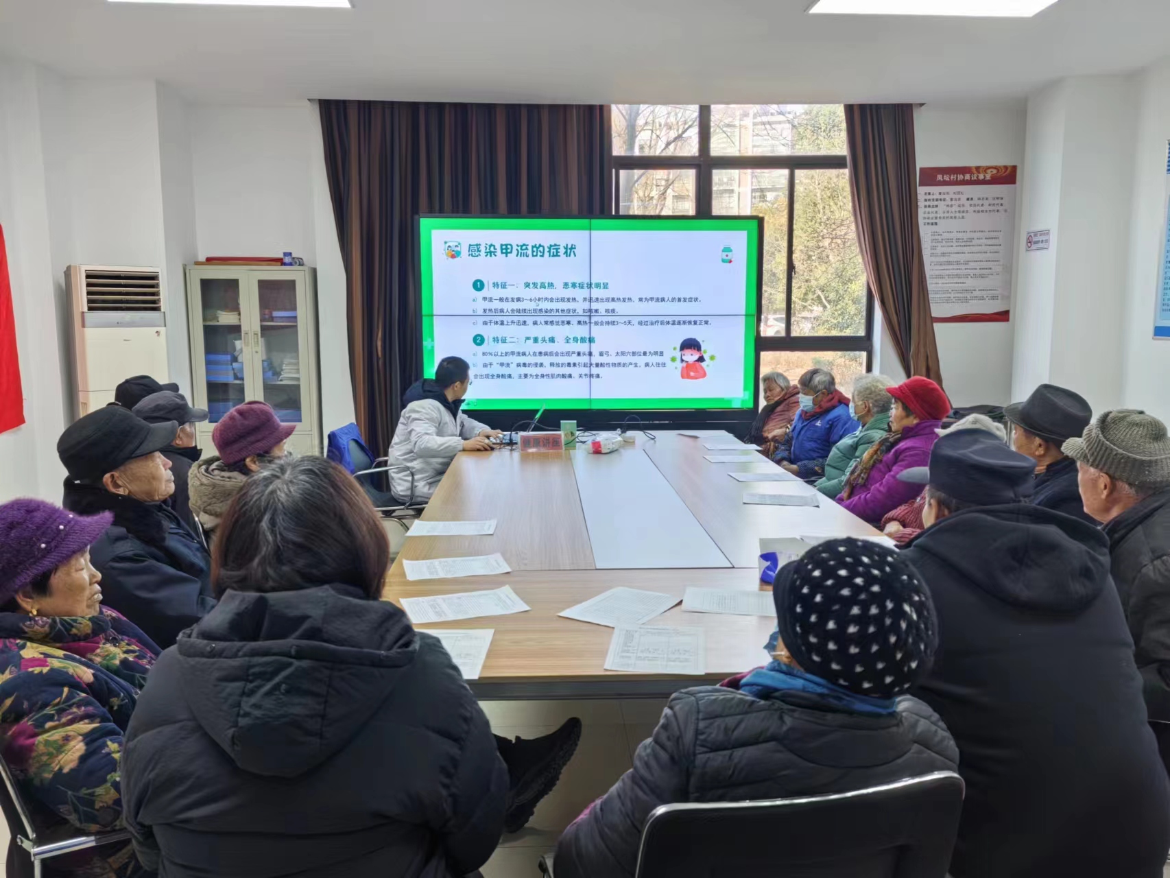 1月25日下午,句容市宝华镇凤坛村委会联合宝华卫生院在一楼活动室开展“关爱老人,健康护航”老年人健康知识讲座。