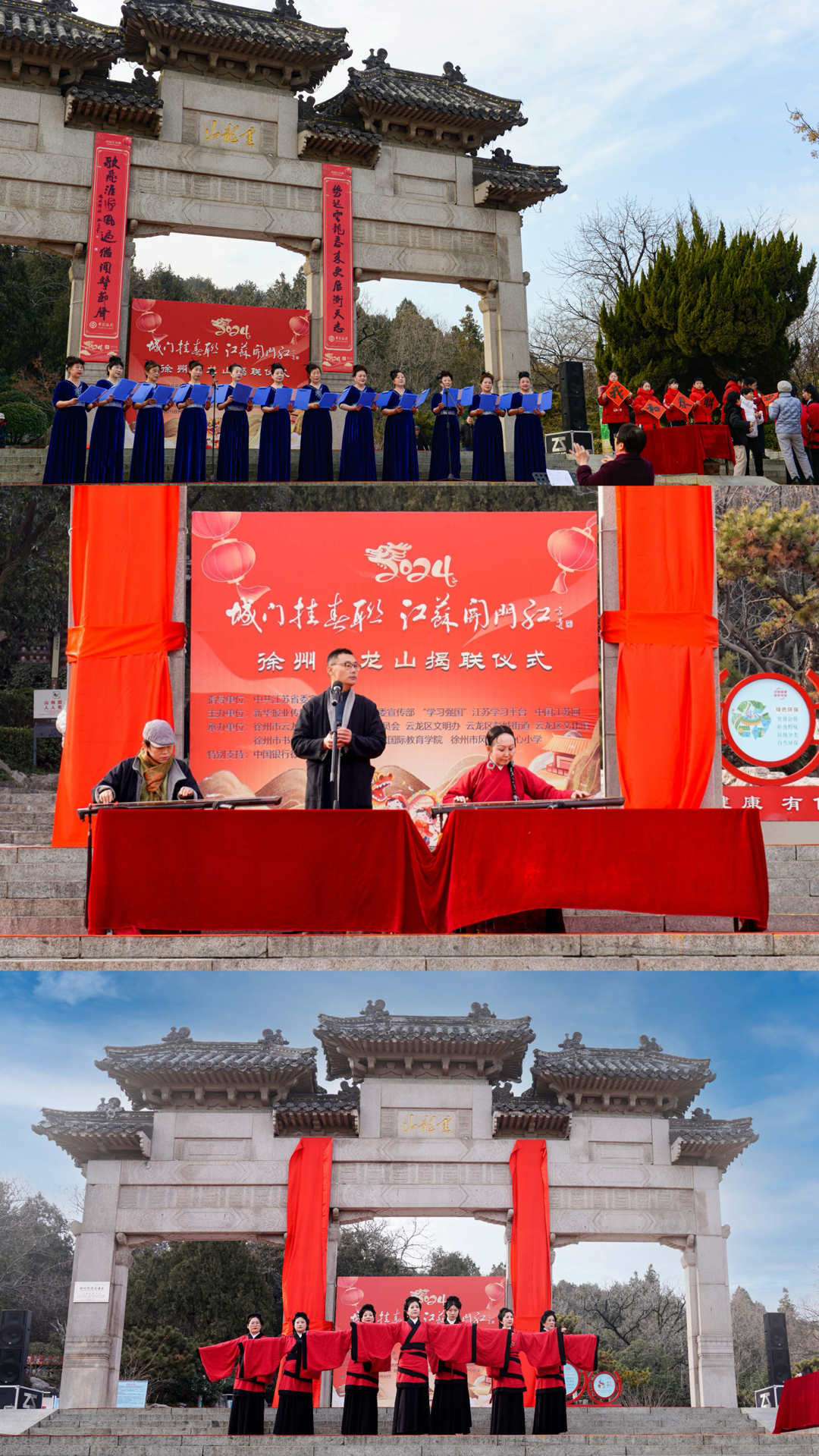 龙腾盛世,城联传意。1月27日上午,伴随着悠扬的古琴声,2024“城门挂春联 江苏开门红”徐州站活动在云龙山下揭开“红盖头”。巨幅春联带来浓浓年味,连续举办七届的揭联活动为古城迎新春增添“仪式感”。