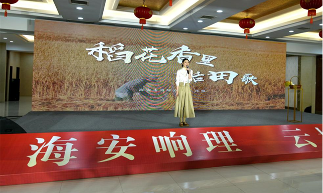 宣讲有队伍,海安市广泛吸纳青年干部、高校学生、青年企业家、新海安人、海安市实践调研基地青年宣讲员等,组建全市“80、90、00”青年宣讲队,用青年话语体系讲好党的创新理论,讲好各行业的高质量发展实践。活动中,宣讲队成员沈悦做了示范,带来理论微宣讲《稻花香里话田歌》,通过一个故事的分享,让听众不知不觉中领悟到了中国人的饭碗任何时候都要牢牢端在自己手上的重要性。