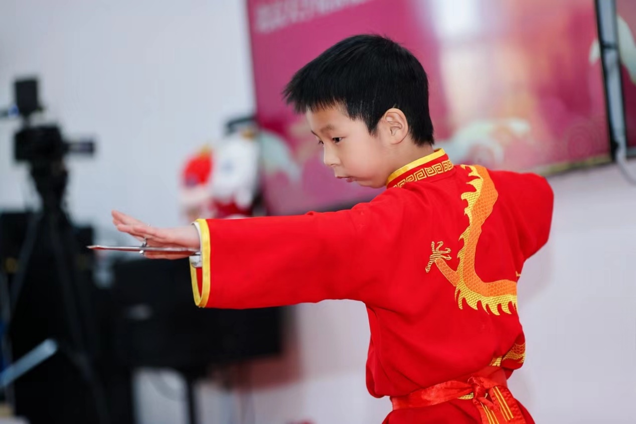 此外,北京大学化学本博2006级校友邓鑫星家的孩子们以武术表演《少年中国说》展示了中华武术的魅力。北京大学元培学院2017级校友刘雅榕带来独唱《花开忘忧》则唤起了大家对美好生活的向往。北京大学南京校友会书画协会的朱建军、冯一丁以书画作品献上新春祝福,王炜代表南京校友会接受赠与。