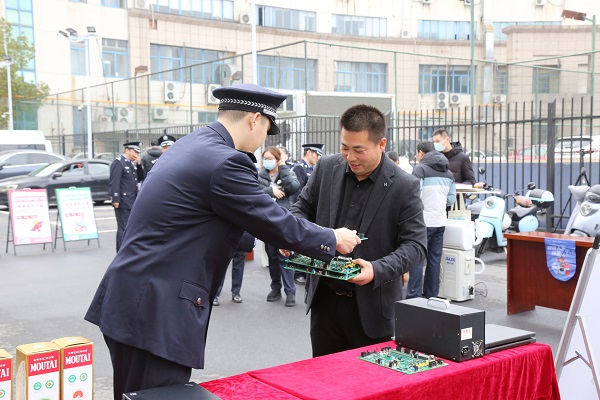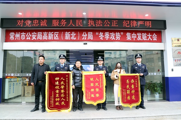 拿到失而复得的财物,受害群众对公安机关迅速破案、及时挽损的工作作风给予高度评价,并为民警送上锦旗表示感谢。1月30日下午,常州市公安局高新区分局在三井派出所举行“冬季攻势”集中发赃大会。活动现场,民警当场发还了电路板、烟酒、电动车、空调、金器、现金等共计80余万元的财物。