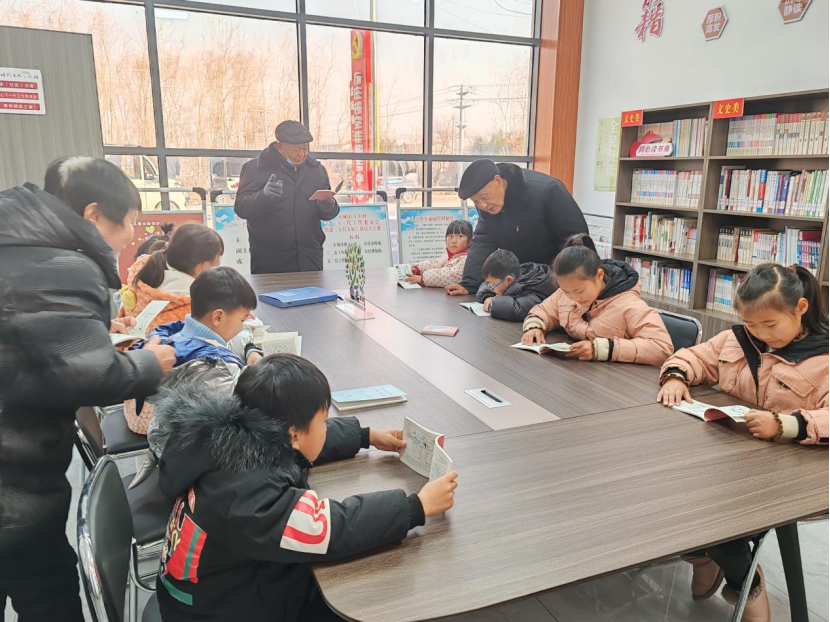 “爆竹声中一岁除,春风送暖入屠苏。千门万户曈曈日,总把新桃换旧符。”孩子们跟随志愿者诵读春节诗词《元日》,琅琅诵读声在棋杆村农家书屋回响。通过讲解和诵读优美的诗词,孩子们感受古人喜迎新年的情怀,了解春节传统民俗文化。