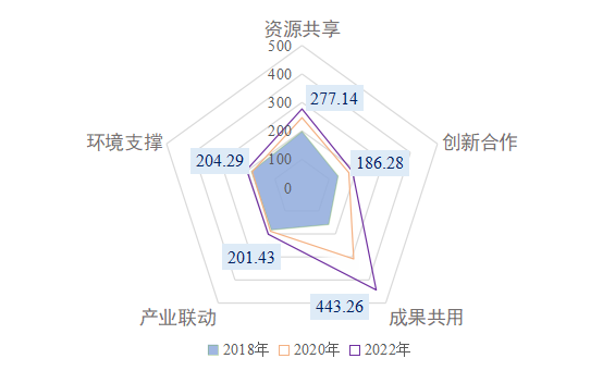为深入推进长三角一体化发展,2024年1月,上海市科学学研究所、江苏省科技情报研究所、浙江省科技信息研究院、安徽省科技情报研究所共同发布《长三角区域协同创新指数2023》(以下简称“指数报告”),指数报告以提升长三角区域协同创新策源力、支撑长三角高质量一体化发展为评价对象,构建了包括资源共享、创新合作、成果共用、产业联动和环境支撑5项一级指标、20项二级指标的指标体系,研究以2011年为基期,测算评估了2011-2022年长三角区域协同创新发展进程。