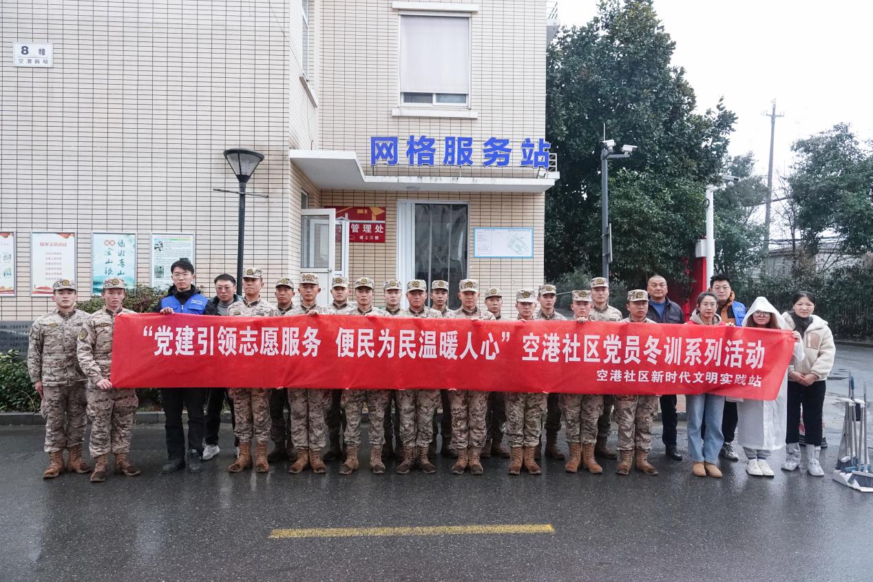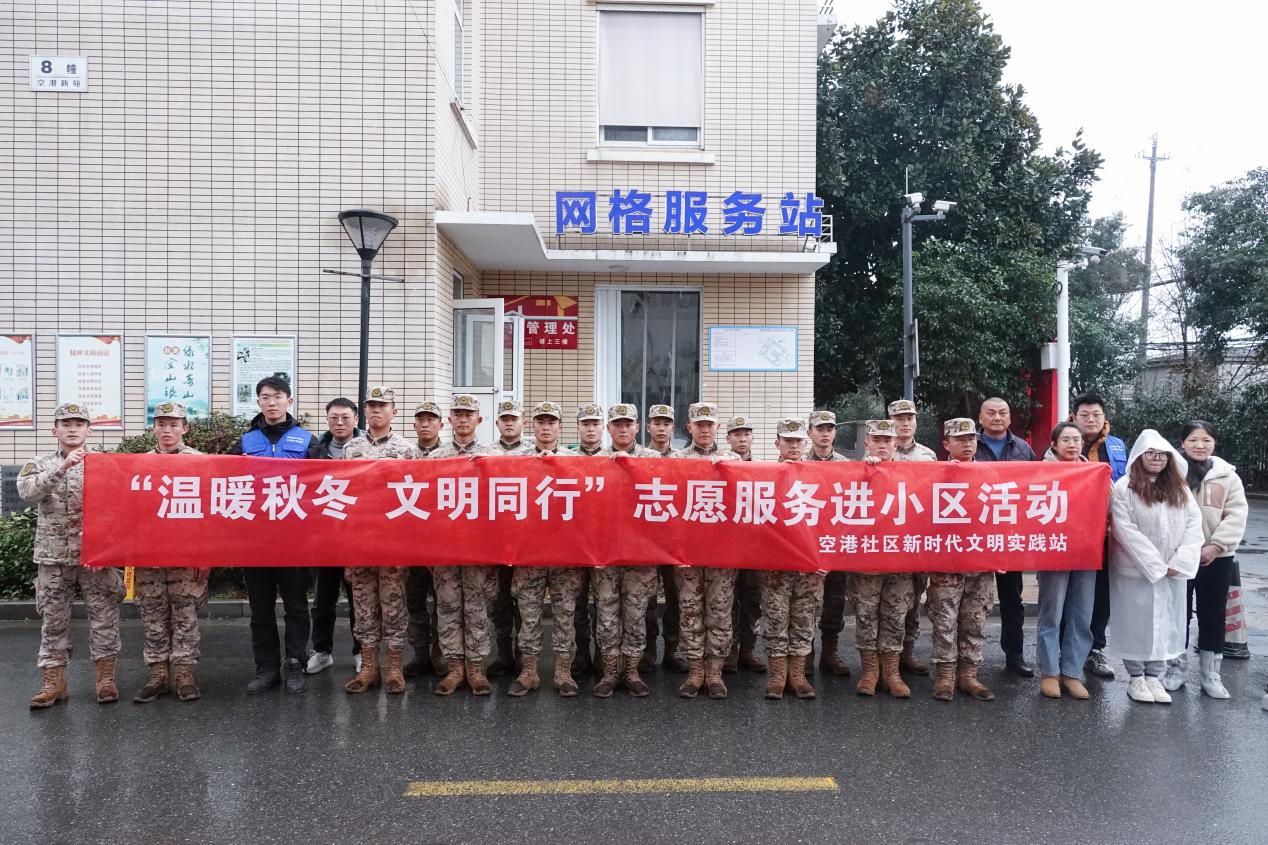 1月19日,空港社区党总支、空港社区新时代文明实践站联合柘塘武警江苏省总队某中队开展“温暖秋冬 文明同行”志愿服务进小区暨党员冬训系列活动。20余名武警官兵同社区党员干部、工作人员及志愿者一起,通过暖心行动,为居民营造了干净整洁的社区环境和文明友爱的社区氛围。