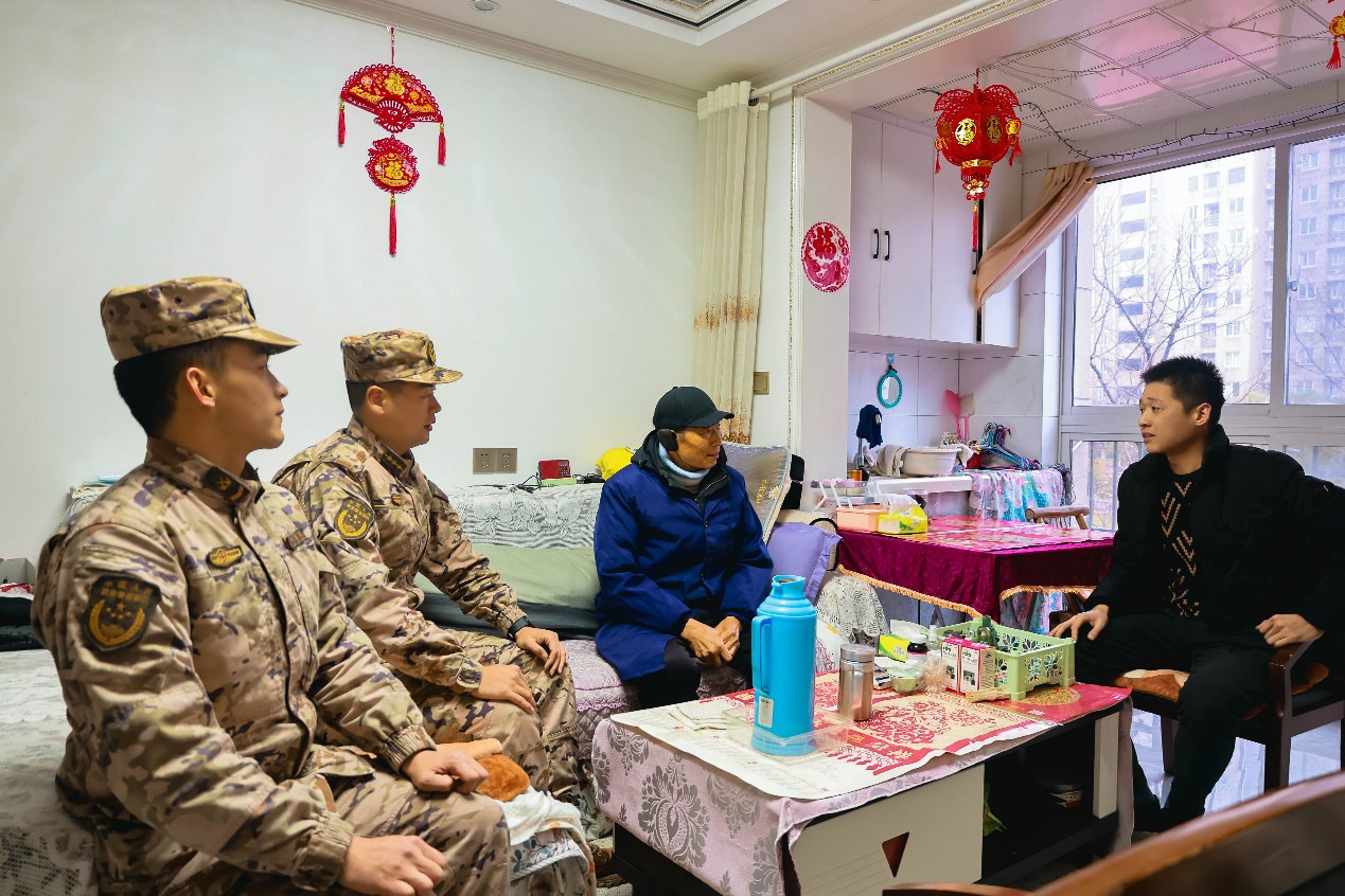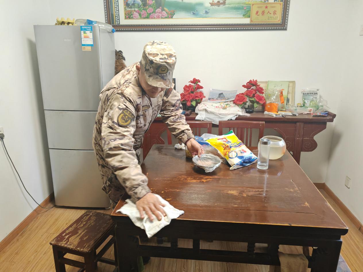 除了打扫楼道,武警官兵及社区干部还走访慰问了辖区退伍老兵,送上了米、油等慰问品、对联及新年祝福。在老人家中,大家一边擦桌椅、扫地,一边同老人话家常,让老人倍感温暖。