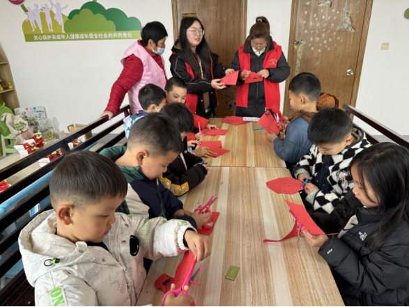非遗剪纸,新春送福。剪纸里蕴藏着丰富的民间智慧,包含了祈福纳祥的美好祝愿。巾帼志愿者为孩子们发放了红色折纸、安全剪刀等工具,向孩子们简单介绍了剪纸的由来及文化意义,教授了剪纸的基本方法、步骤技巧。孩子们手中的剪刀在红纸上飞舞,伴随着“咔嚓”声,红纸在指尖灵活翻转,在剪刀的一起一落间,窗花、生肖剪纸等作品活灵活现地展现出来,让孩子们在剪纸中感受传统文化的魅力。