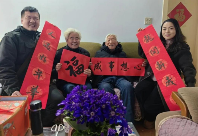 野徐镇康居社区以“高龄生日会 岁末大联欢”为主题,为6名“7080”后的寿星举办龙年新春集体生日会。活动现场,老同志戴上生日帽、同唱生日歌,蛋糕的香甜和欢快的笑声相互融合。“跟着共产党,幸福万万年”,年纪最大的李爷爷在手工贺卡上写下生日寄语,言语间传递出真挚的感恩和对美好生活的祝福。(王洁)