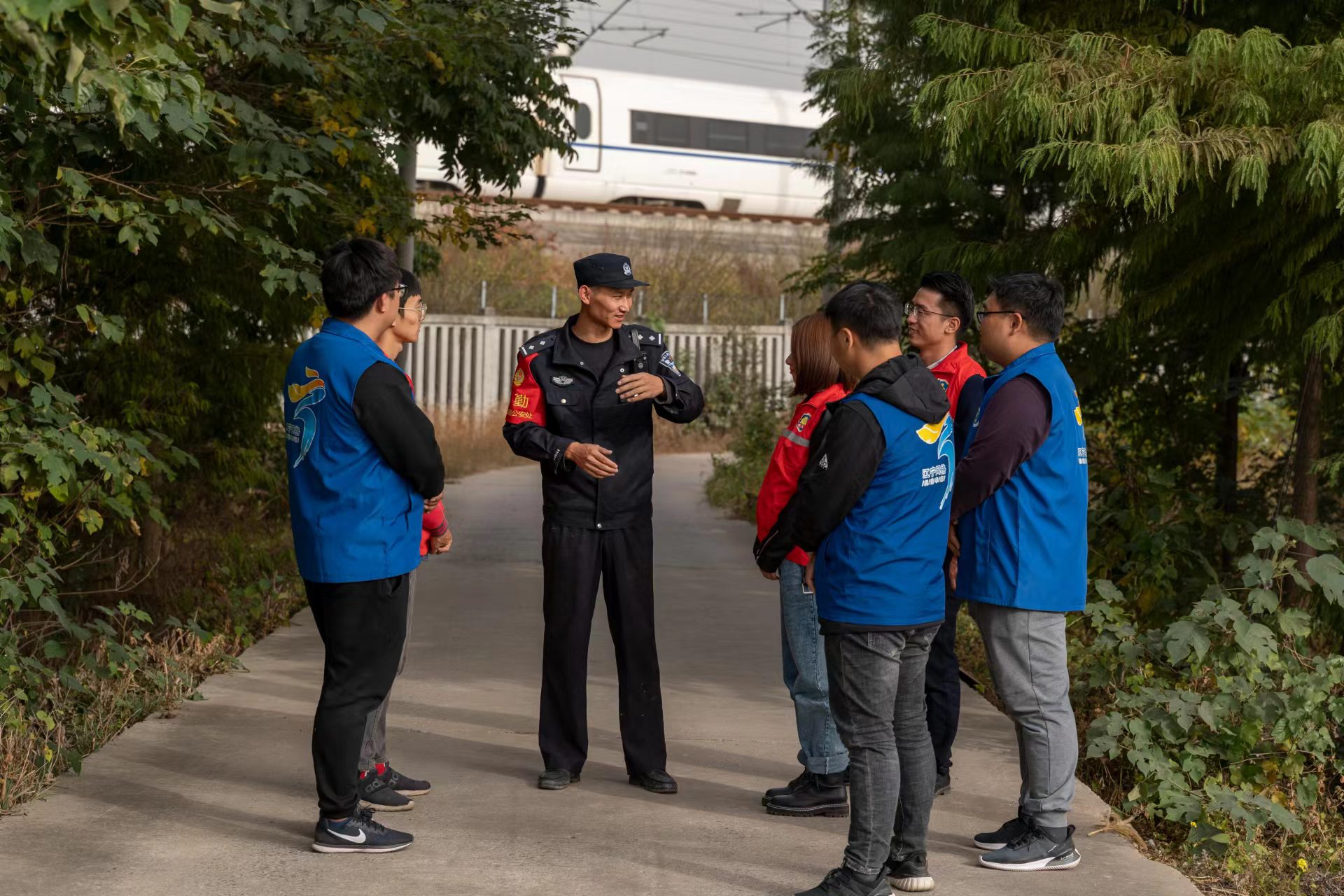 黝黑的皮肤、颀长的身材、操着一口的浓重的东北口音,一边不停地打电话,这是句容市郭庄的老百姓对李晓刚警官最深刻的印象。今年34岁的李晓刚是南京铁路公安处溧水站派出所的一名的高铁线路民警。从警以来,他远离东北家乡,扎根溧水站站派出所下辖相对偏僻的句容西站警务区11年。李晓刚所在的句容西警务区北接江宁、南临溧水,管辖句容西高铁站和两段共计19.29公里的高铁线路,跨越南京和镇江两市、九个行政村(8696户、26856人)、一所小学(约1032人)。管内山路崎岖、水网密布。这里远离城市的喧嚣,没有熙熙攘攘的旅客,有的只是一条高铁线路和铁轨旁广袤的土地、炊烟袅袅的人家。麻雀虽小五脏俱全,警务区相当于一个只有一名民警坚守的微型派出所。句容西站离溧水站派出所距离约三十公里,如果站区和线路出现警情,所里第一批进行支援的民警赶到至少需要30分钟,前期的处置需要李晓刚一个人承担,他除了负责车站安检、查堵、治安环境,还管辖二十公里的线路治安。
