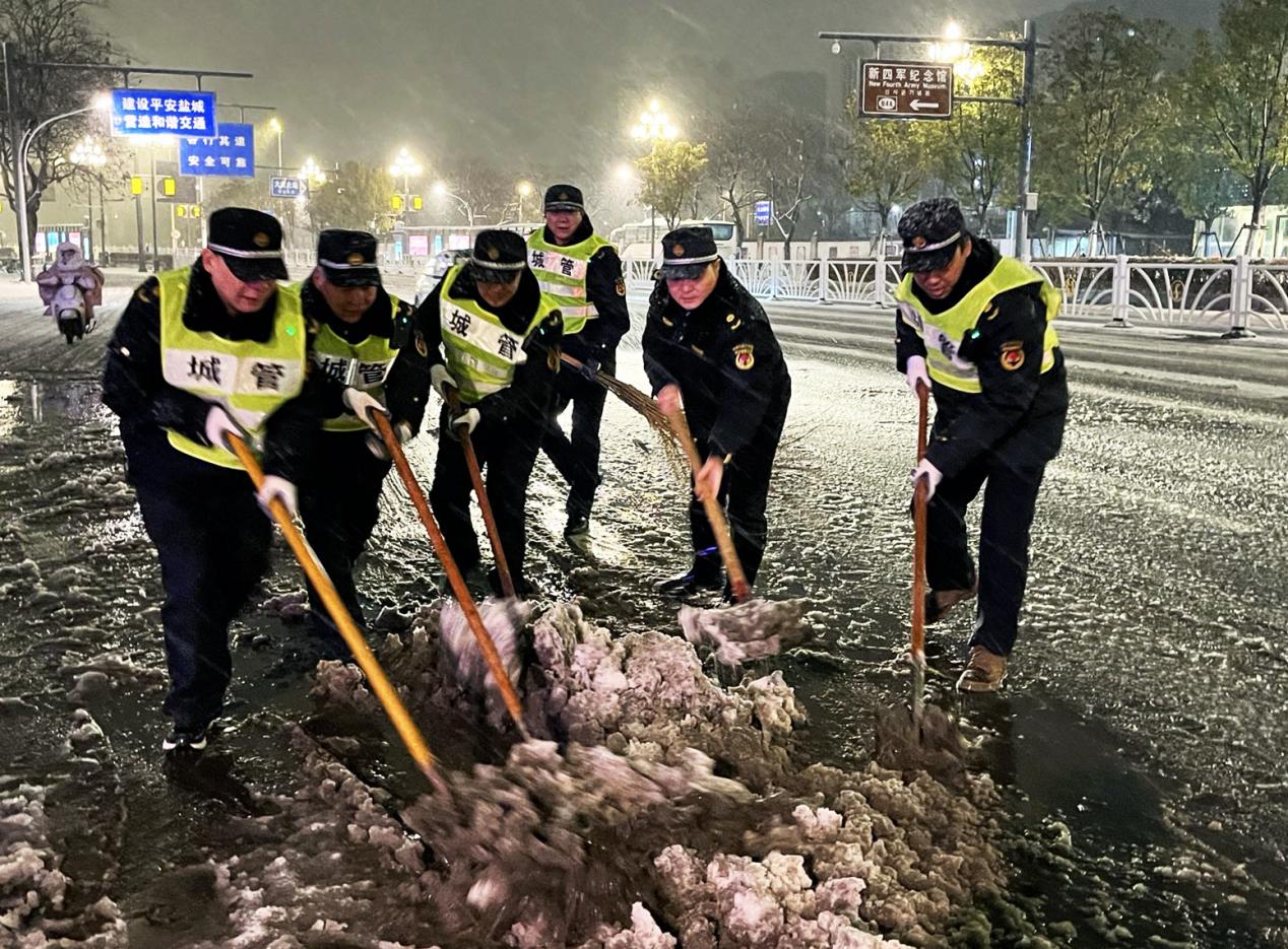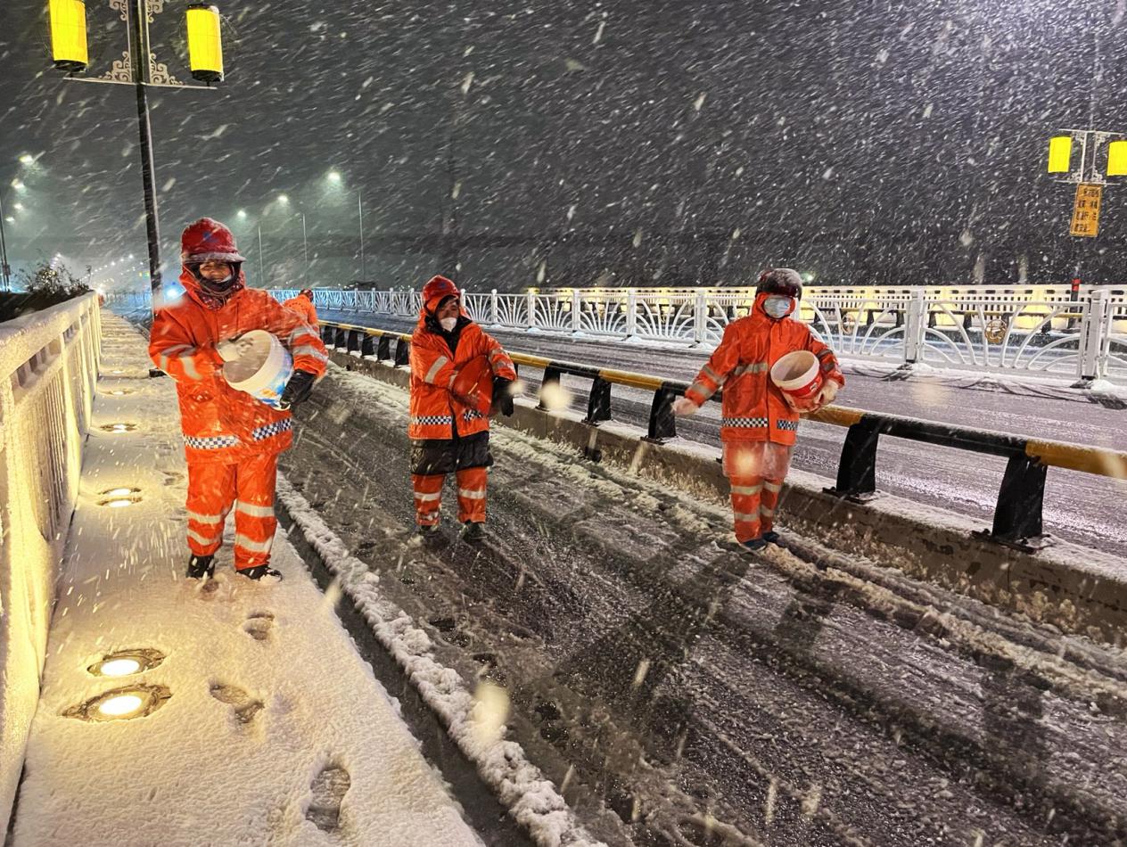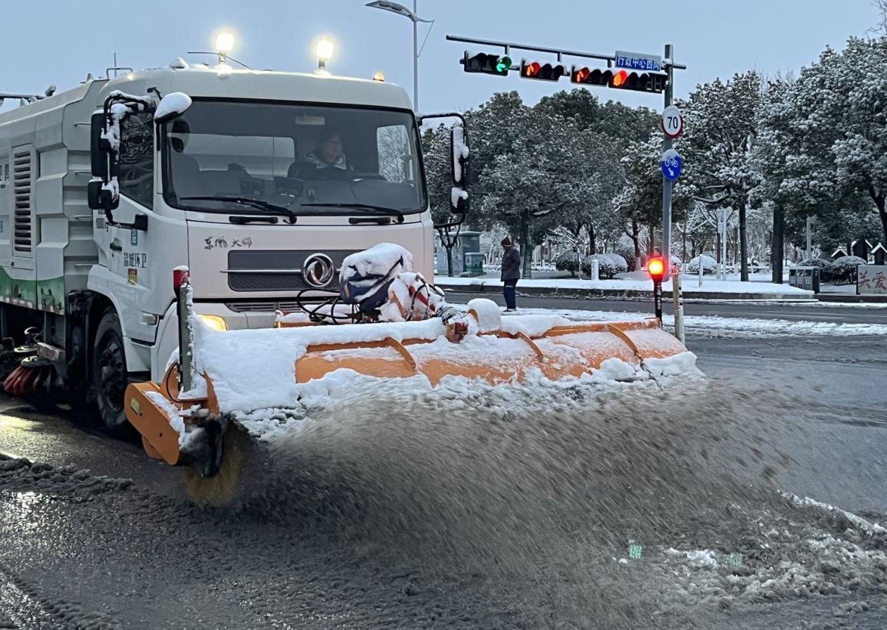 2月4日上午,盐城市区再次迎来降雪,市气象台还发布了暴雪黄色预警信号。面对持续的雨雪低温天气,盐城市城管局组织全系统干部职工迅速整装再出击,连续作战,吹响了全城清雪除冰集结号,力争市区主次干道畅通,保障市民群众出行安全。