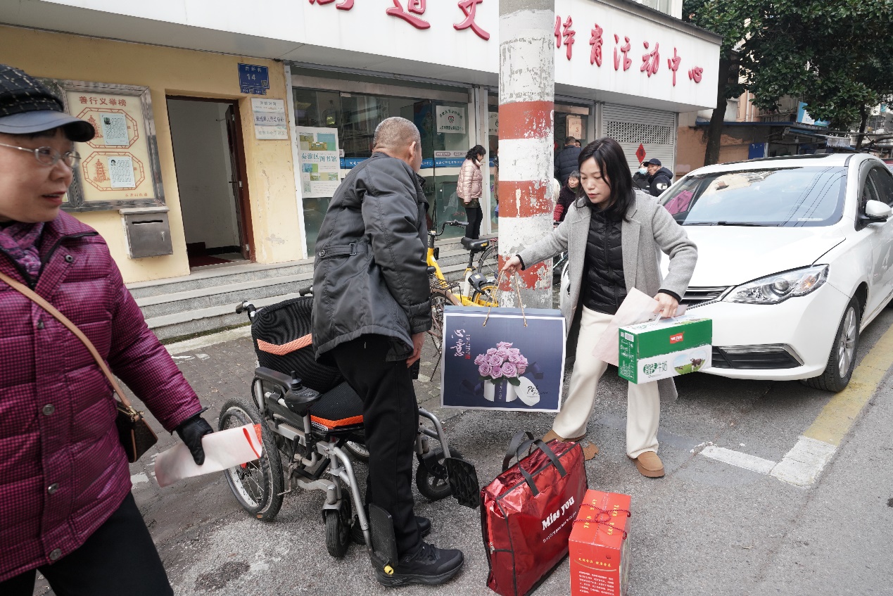 2月7日,南京夫子庙食品有限公司走进南京市秦淮区五老村街道,开展了暖冬关爱慰问活动,为10户困难残疾人家庭送去鸡蛋、牛奶、棉被等生活物资。