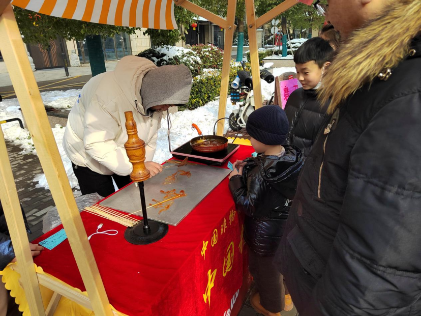 年味渐浓翰墨香,冬日缤纷手工忙。琵琶街道宜居社区、泽惠嘉园社区、万寨社区、殷庄社区、八里社区新时代文明实践站相继开展迎新春民俗大集活动,现场邀请多位民俗技艺传承人为居民献上糖画、香包、糖葫芦、捏泥人、剪纸、春联等传统艺术品。挥毫泼墨,笔走龙蛇,一副副寓意吉祥的春联各显神韵,一张张喜庆洋溢的福字一一呈现,满满的生活味、浓浓的人情味交织升腾,让人们在红红火火过大年中体味幸福,寄托美好期盼。殷庄社区“缤纷的冬日——剪窗花,迎新春”的亲子活动,抑或是万寨社区“巧手做灯笼,欢乐迎新年”未成年人龙年寒假手工灯笼DIY活动,让孩子们在趣味活动中感受民俗文化,在寒冷的冬日营造起浓厚的节日氛围。