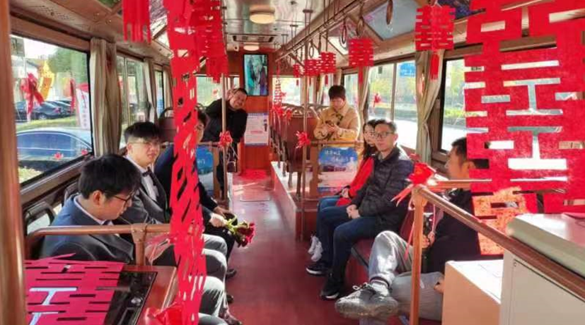 现场,两位新人表示,与传统婚车相比,“公交婚车”满足个性化需求,不仅经济实惠,响应绿色出行,还可以按照自己的喜好来装饰婚车,另外,亲朋好友们同乘一车,互动性、氛围感强,随车的摄影师能用镜头留下更多有趣又有意义的瞬间,见证我们的幸福时刻。