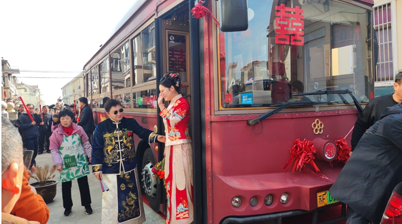 大年初四,一辆载着新人的“公交婚车”行驶在南通市海门区包场镇至通州区金缘花苑的路上,成为一道靓丽的风景线。