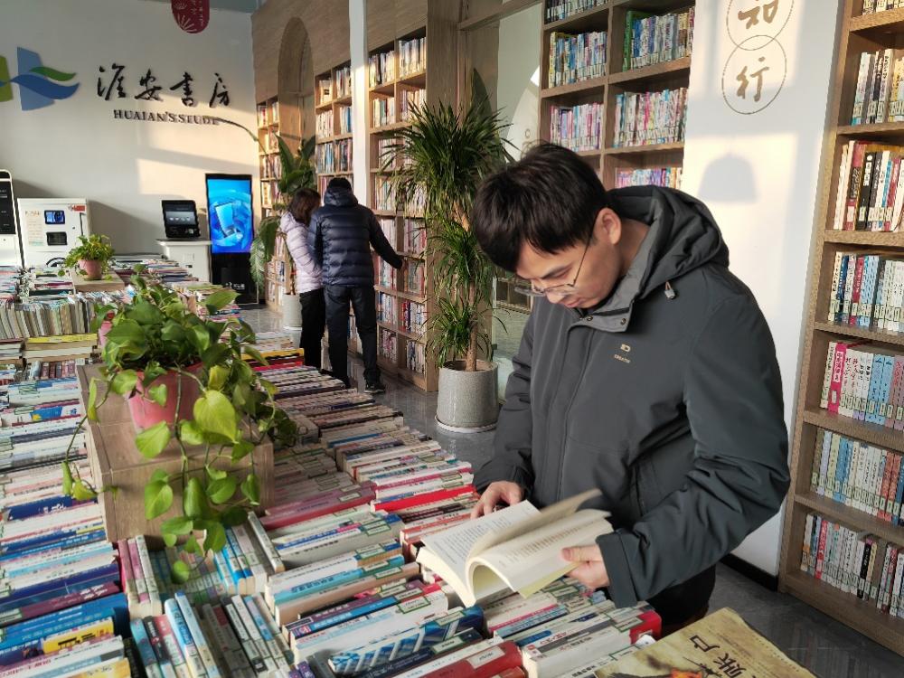 2月12日,淮阴区新华书店内读者在阅读。