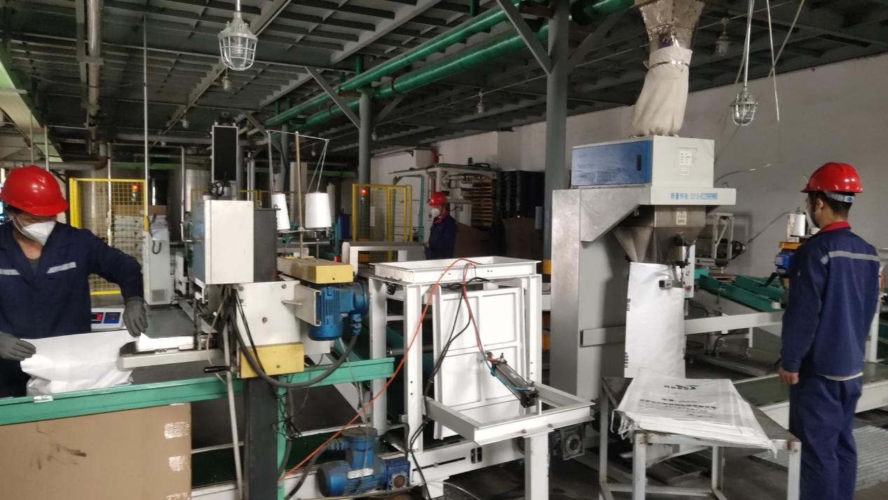而在江苏锐巴新材料科技有限公司生产车间内同样也是一派繁忙的景象,多条全自动生产线正在不停运转,工人紧张而有序地忙着包装,一袋袋产品经过输送带后由机器人抓取、码放,随后叉车快速运入成品仓库。