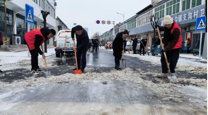 灌南县汤沟镇组织全镇党员干部在街道上除冰