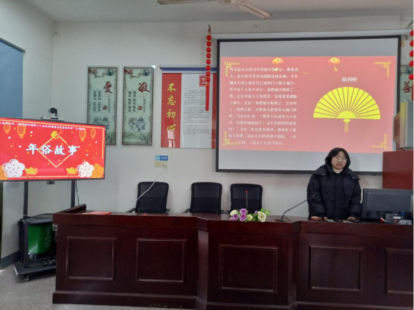 大学生志愿者张王颖分享年俗故事,又与大家共同讨论压岁钱、福倒啦、贴春联、吃年夜饭等春节传统习俗,大家你一言我一语,现场氛围热烈浓厚,加深了大家对春节这一传统节日的理解。