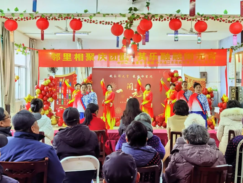 纵情文化,浓厚节日氛围。靖江市委老干部局联合靖城街道江华社区共同举办“邻里相聚庆团圆,其乐融融闹元宵”主题活动。靖江市银发生辉文化艺术团为社区居民带来了锡剧《切莫让小天地遮住目光》、男声独唱《天边》等文艺节目。精彩的节目赢得了观众的喝彩和阵阵掌声。