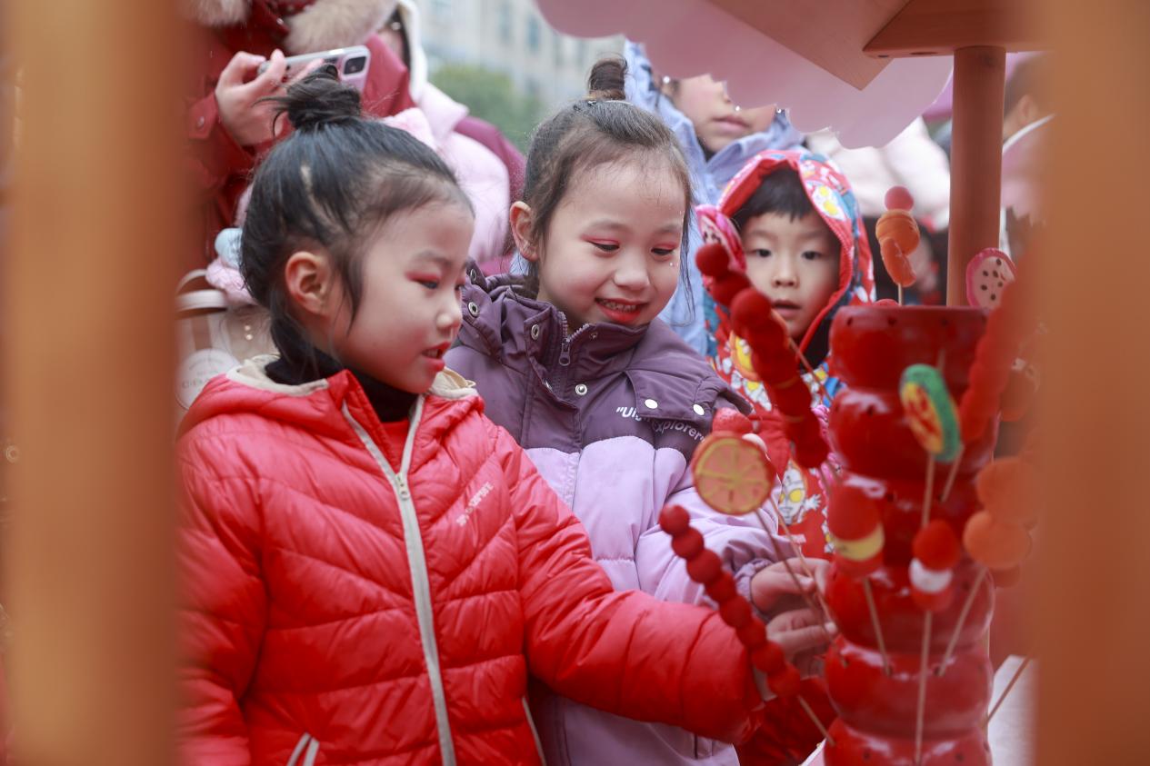 小朋友们在观看糖葫芦制作。(顾继红 摄)
