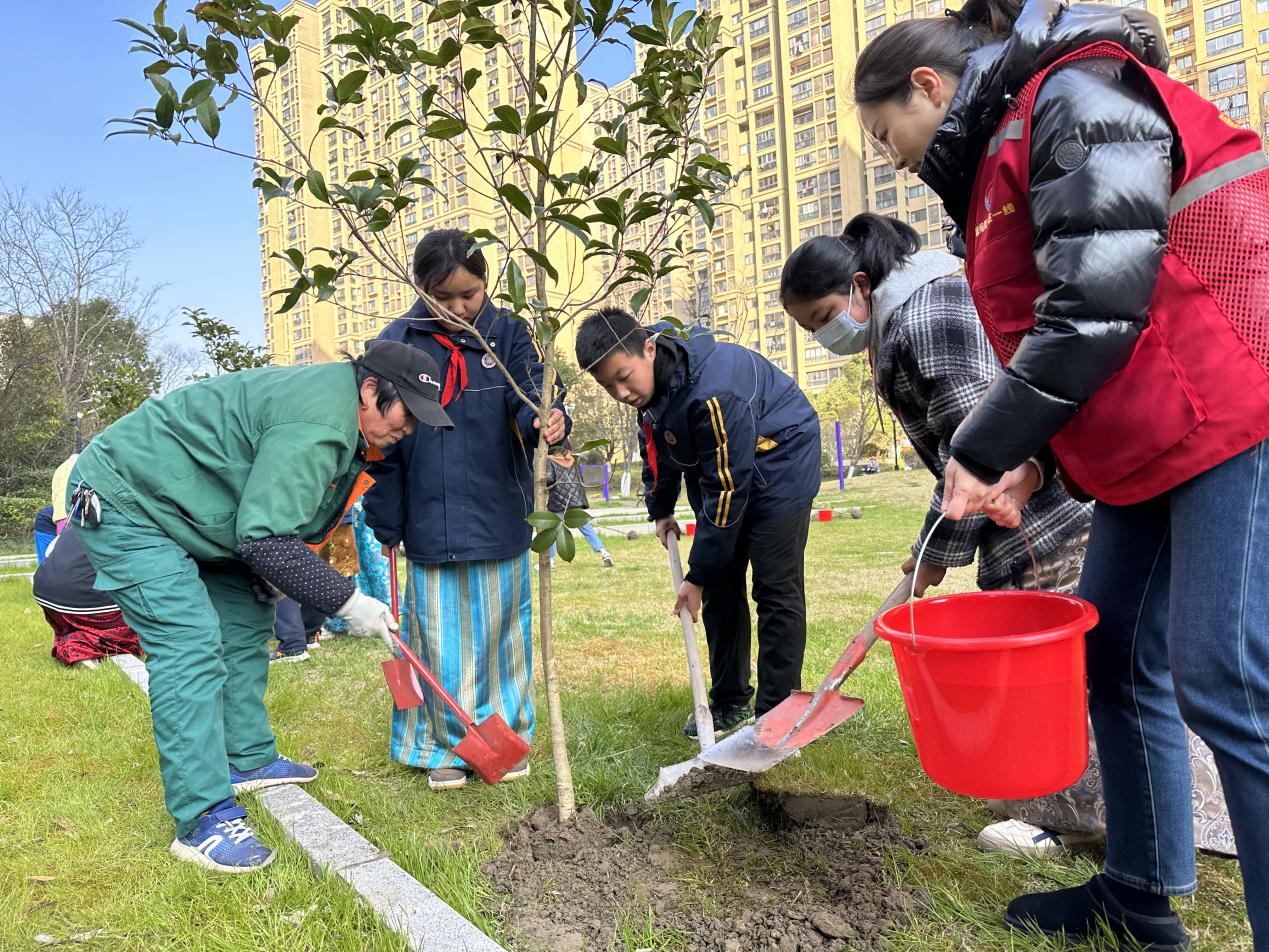 活动当天,同学们在社区党员志愿者的带领下,挥锄挖土、扶树正苗、提水浇灌,齐心协力植下一棵棵充满生机的树苗,挂上一个个亲笔写下的心愿。“党建红”与“生态绿”交相辉映,呈现出一派生机盎然的景象。“今天和同学们一起亲手种下了树苗,我感到非常的开心和自豪,希望小树能够茁壮成长,守护好我们的绿色家园。”来自西藏民族中学的白玛曲珠说道。