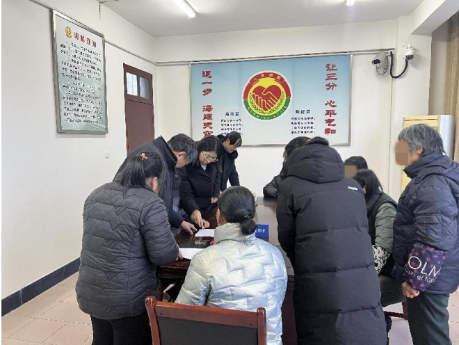 3月5日,如皋法院磨头法庭驻庭调解员李百群、法官助理孙柳共同化解涉14名女工的薪酬纠纷。