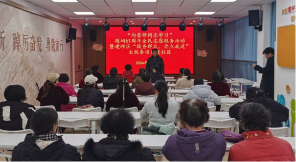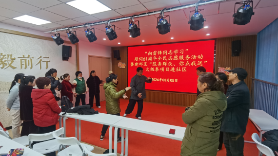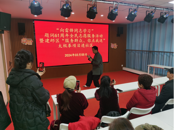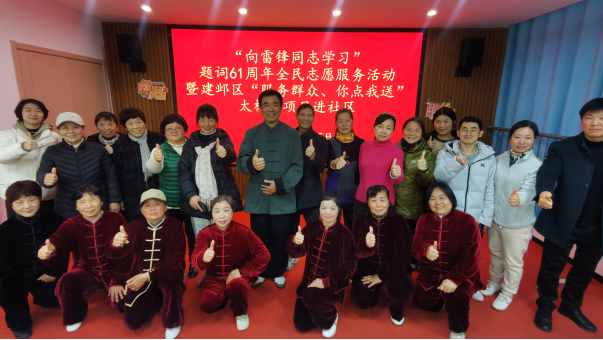 近日,“向雷锋同志学习”题词61周年全民志愿服务活动暨建邺区“服务群众、你点我送”太极拳项目进社区活动,在南京市建邺区莲花嘉园社区举办。