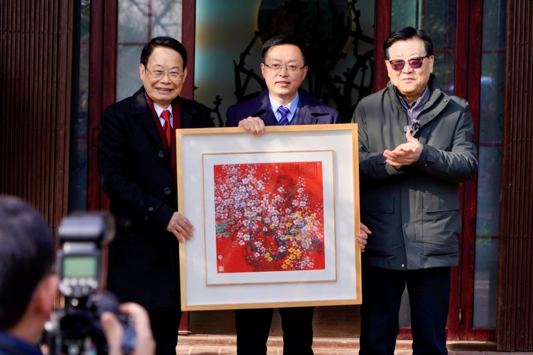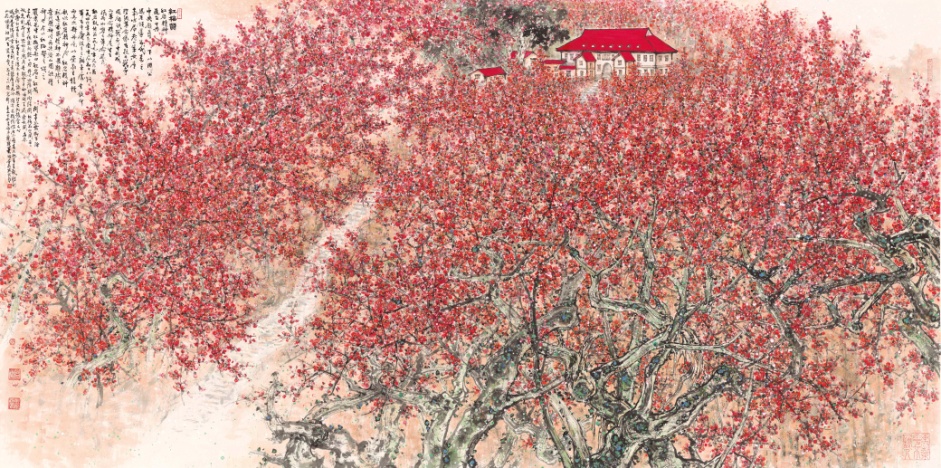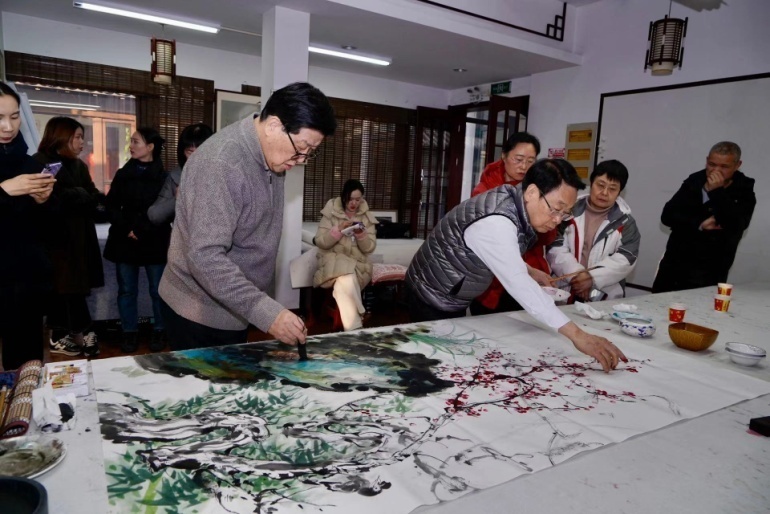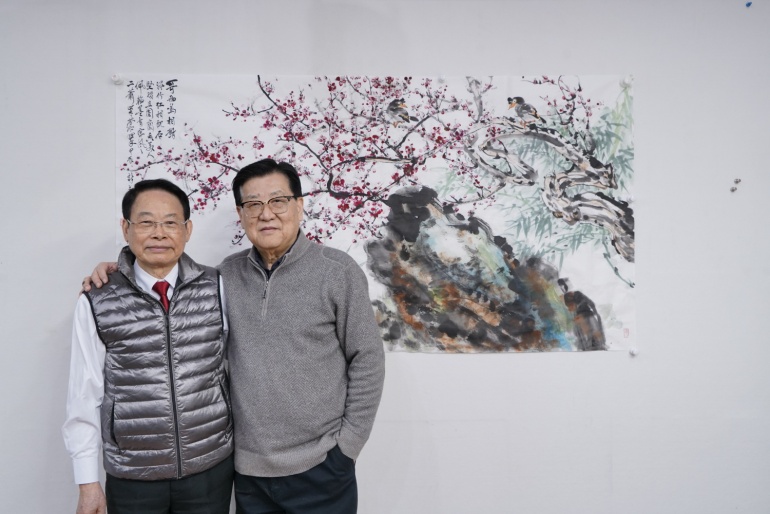 近日,由中山陵园管理局主办,南京明孝陵博物馆、南京钟山文化研究会承办,广东省岭东美术馆、江苏钟山书画研究院协办的“翰墨有宗风——萧平、萧晖荣中国画联展”,在南京中山陵梅花山“萧晖荣梅花艺术馆”开幕。活动中,83岁的江苏省文史馆书画院院长、书画鉴赏大家萧平教授,与香港美协荣誉主席、年近八旬的萧晖荣合作,在孙权纪念馆画室完成了六尺整张国画《岁朝图》,令人叹为观止。