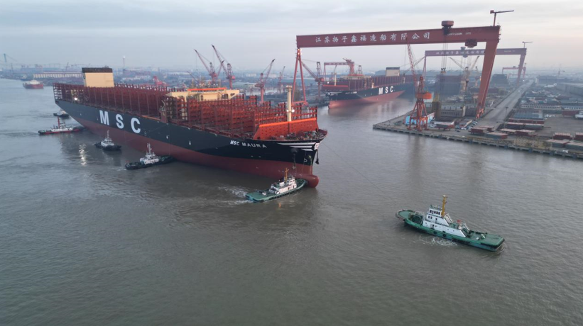 3月13日,泰州3艘新造集装箱船安全出坞。