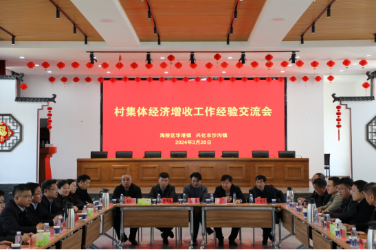 3月20日,泰州市海陵区华港镇党委书记曹亮、党委副书记丁新峰率队到兴化市沙沟镇考察村集体经济增收工作,沙沟镇党委书记朱鸿业,镇党委副书记、政法委员姜正明一同参加。