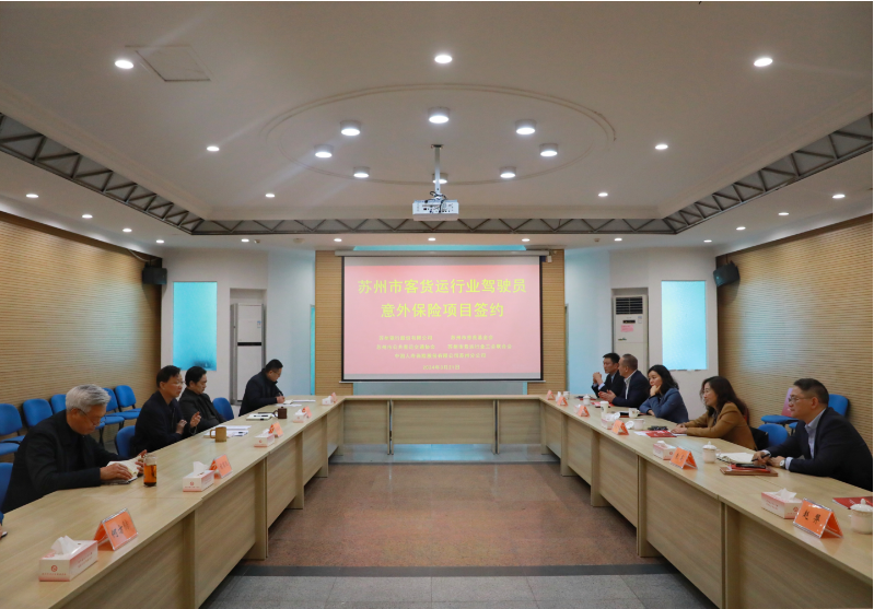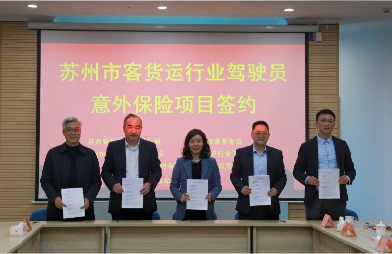 3月21日下午,苏州市客货运行业驾驶员团体意外保险项目签约仪式在苏州市慈善总会举行。苏州市交通运输局党组成员、副局长马文欣、中国人寿苏州市分公司副总经理袁鑫、苏州银行股份有限公司群团工作部总经理蒋亮、中国人寿苏州园区支公司经理赵羿、苏州市公共客运交通协会秘书长吴佳、苏州市货运行业工联会主席相金龙、苏州市慈善总会会长徐国强、副会长梁振华、秘书长胡耀赋出席。