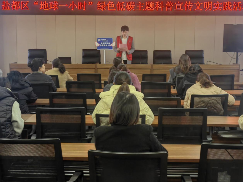 3月22日下午,在“地球一小时”活动来临之际,盐城市盐都区新时代文明实践志愿服务总队、盐都区科协、盐渎街道新时代文明实践所、九三学社盐都区基层委、兴城社区新时代文明实践站联合开展了一场集知识性、趣味性、科学性为一体的科普宣传系列活动,来自辖区内的科技志愿者、社区党员干部、居民群众、网格员等相关人员参与了此次活动。